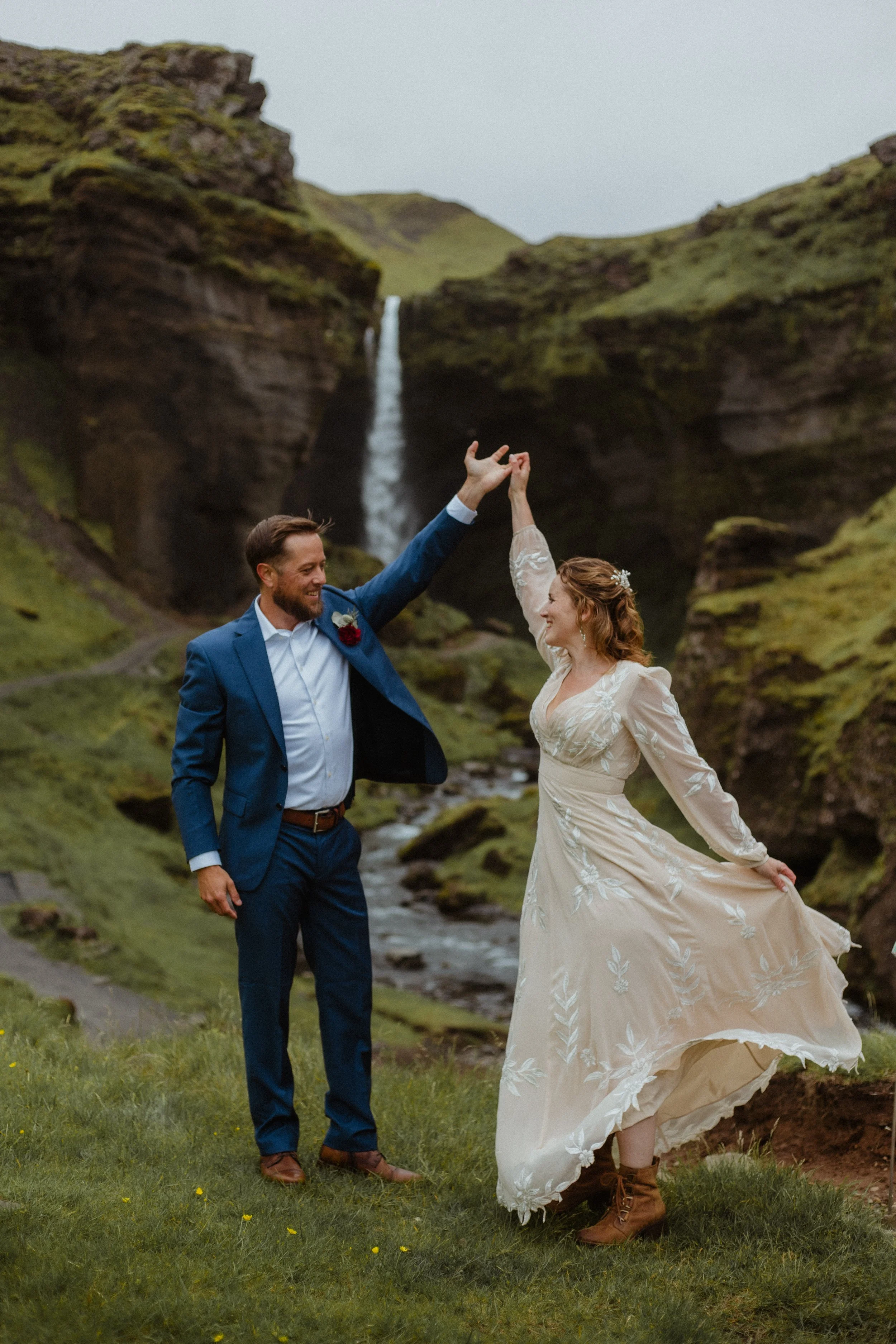 Another waterfall which is located just around the corner next to Skógafoss (about 5 min driving between the parking sites) is Kvernufoss. Unlike some of the more popular waterfalls in the area, Kvernufoss is relatively unknown, providing couples with a more intimate and secluded setting for their photos.